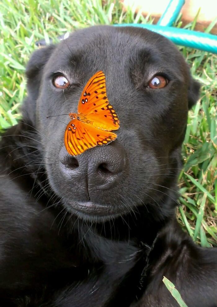 And if you happen to be around with your camera, you might be lucky enough to catch an unforgettable moment. Have you noticed, by the way, how a butterfly almost always lands on a dog’s or a cat’s nose, or sometimes its ear, and not on any other part of the body? Who knows, maybe butterflies also think our pets are some bizarre flowers that can move around?