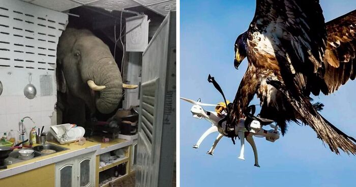 Every (living) thing radiates a certain vibe. Even toilets. And the Facebook page Animals With Powerful Auras is an excellent example of how captivating some can be. From an elephant barging into a kitchen straight through the wall to an eagle destroying a drone mid-air, the guys and gals that appear on this fun little online project were certainly made to rule so let's obey and scroll through their pics, honoring their boss nature.