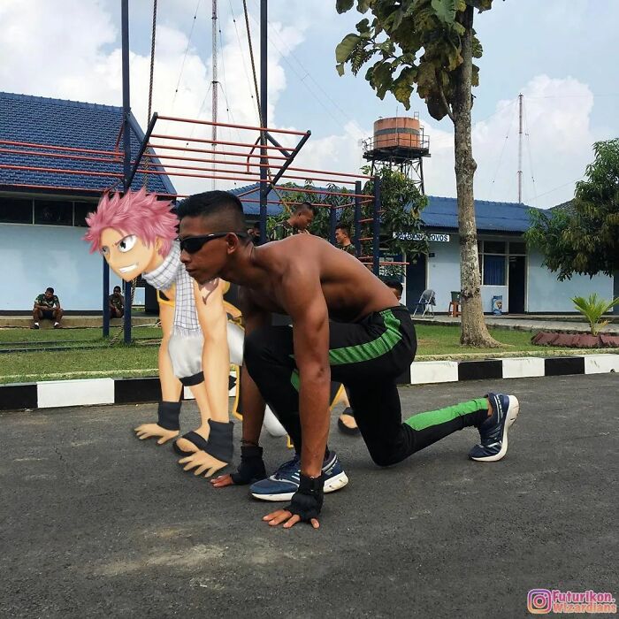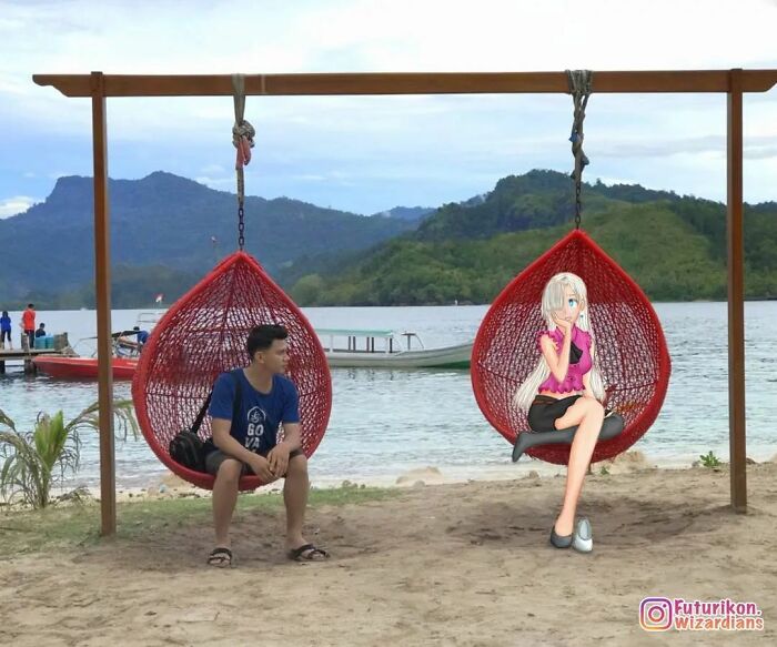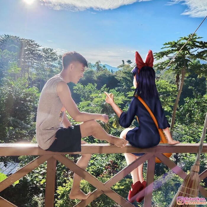 Most of the time, I just see some photos, and the idea comes to my mind. I see the photo, and I suddenly imagine some character interacting with the photo, and I just draw it down and blend it as naturally as it can look to the original photo.