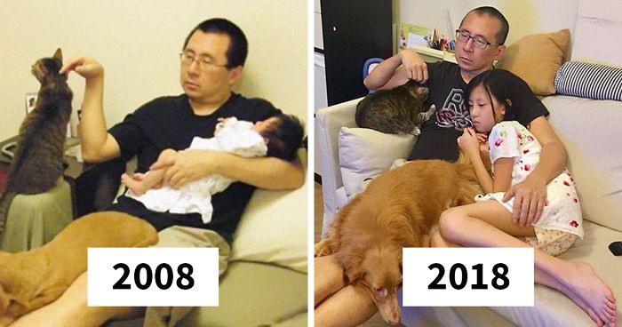 Father, Daughter And Pets Take The Same Photo For 10 Years, And It’s Bizarre How Little Things Actually Change
