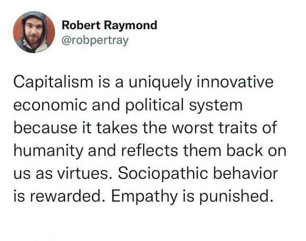 The page is filled with spicy posts that call out capitalism, calling for equality/dignity instead. As they rightfully state, “Communities/eco systems make the world go round, not colored pieces of paper.” Bored Panda has put together the best content from the page for you to scroll through while the rich get richer, the poor get poorer, and you patiently await your next paycheck.