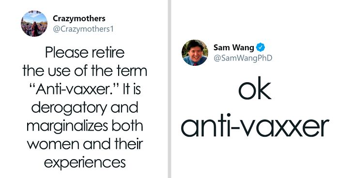 You have to be careful what you ask for on Twitter. An organization of “crazy mothers”—if they’ve already reclaimed that accusation, who knows why “anti-vaxxer” is the one they take issue with—have released a statement asking the media to call them “vaccine risk aware,” calling the widespread use of “anti-vaxxers” derogatory and inflammatory. Commenters put forth their criticisms of the proposed term, not to mention hundreds of scathing alternatives.