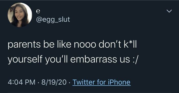 I've always hated this response from people. Like, well, I'm here now, so quit with the dumb "What if". Sometimes, I caught myself thinking: "Well, if yours hadn't had you, there would be one less person I'd have to hear this b******t from." -.-