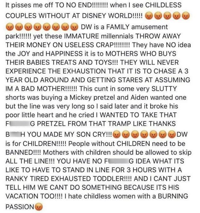 Load More Replies...I am still traumatised after reading the one about the woman at Disney World who was so upset about childless couples going there . . . . .