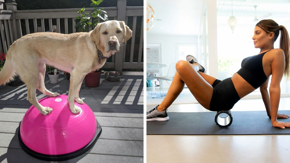 Review: "I love my new Bosu ball. I am an Occupational Therapist working with kids with special needs . I also have a facility dog who goes to work with me. I have the dog using the exercise equipment alongside the kids and it highly motivates them. She loves the Bosu also and often nudges me and walks over to the ball so she can "work out". We have family fun together. The quality is great and it was easy to inflate. It stands up to me exercising on it and to dog nails being on it and doesn't pop or leak air." - bigdogutah