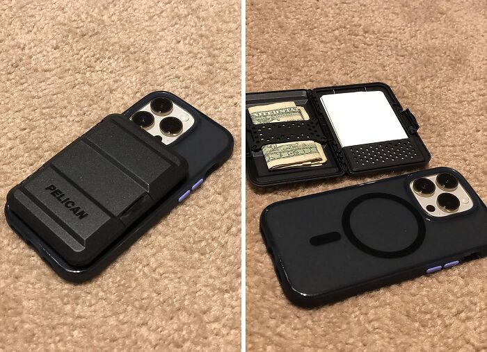 Review: "Very well made MagSafe wallet! Connected this to an iPhone 14 Pro and it is very strong and I like that the cards are hidden. You can easily fit 3 cards on the right behind the band, possibly 4, but I personally wouldn’t push it. Left side can hold cash, cards are too wide for it." - Amazon Customer