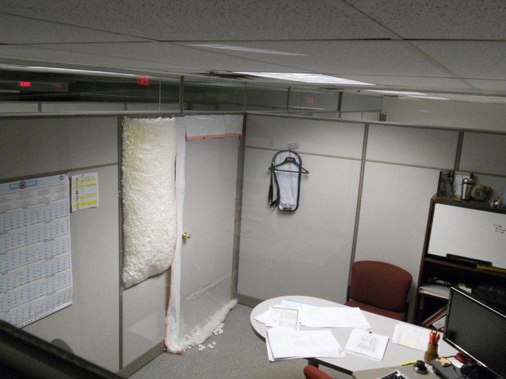 Ok, how did the prankster get out of the office? Presumably those smaller cubicle offices don't have two doors... thanks in advance