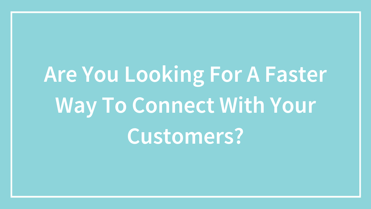 Are You Looking For A Faster Way To Connect With Your Customers?