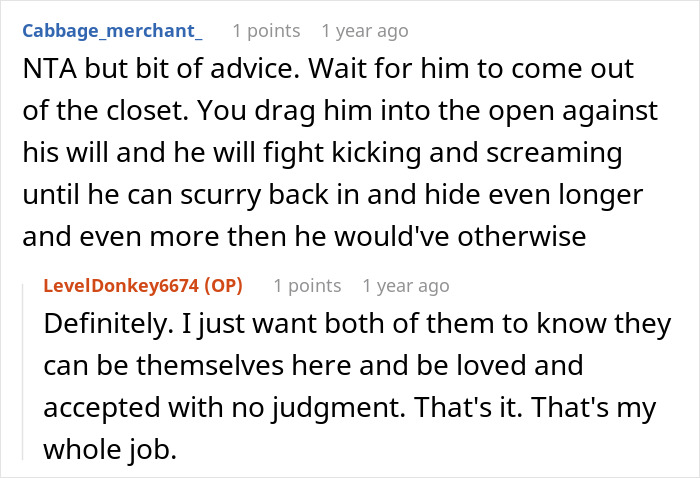 According to redditor u/LevelDonkey6674, her own parents believe that she was somehow encouraging her son to be homosexual. At the time of writing, the OP explained how she limited her interactions with her parents, and started monitoring her children’s chats and calls with their grandparents, to make sure they weren’t “exposed to negativity.”