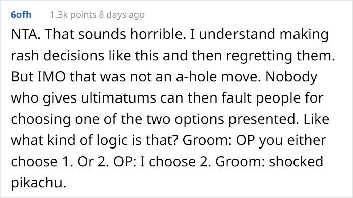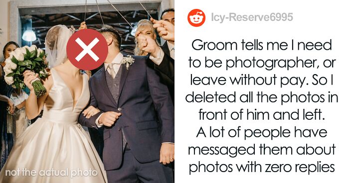 Load More Replies...The groom fired the photographer without pay. There was no contract anymore, which gave the photographer the freedom to do with the pictures whatever she liked. She chose to delete them. End of story. All this "yes, but..." leads to nothing. It is done and over. Perhaps both of them will have learned a lesson out of this.