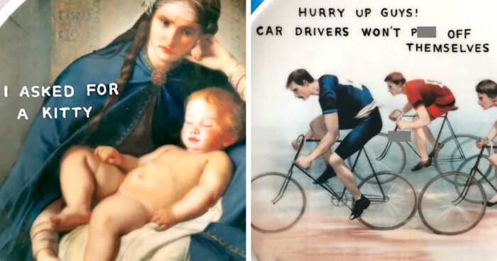 I think I don't have a favorite caption, but I definitely have some favorite plates. Most of the time, they are not the most popular ones as they are more complex and bitter. One of them is the one I made after my grandma passed away (in attachments, with a smiling girl with an urn). Another one is with the crocodile complaining that people are getting bitter these days. Another one is a collaboration with the great artist Olga Pawlowska where I used her painting "the shelter".