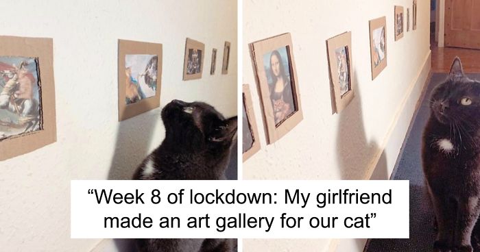 “It was my girlfriend Jess’ idea. Our cat Richard Parker hurt his foot so he couldn’t go outside and as we couldn’t because of lockdown, we thought how maybe he’s missing his cat friends, so we made a gallery so he could look at other cats,” Jake Lambert explains to Bored Panda. They created a personal, cat-sized gallery that he can visit and explore amazing artworks inspired by the most famous paintings in the world.