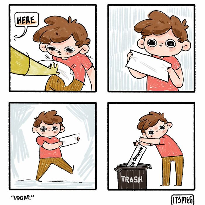Meg finds it very satisfying when people think that her content is either funny or relatable. While she would probably still doodle comics for herself, the support and reactions from her readers are what keep her illustrating. "I love being able to make someone laugh, and comics are a really accessible way for me to do that."