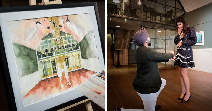 The proposal idea was to walk her through key chronological moments of our lives, climaxing to the present moment, where the reveal of the final art piece perfectly paved the way for the wedding proposal itself.