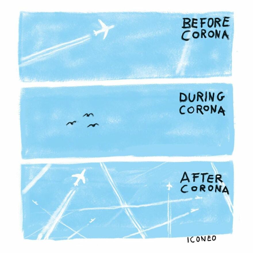 Load More Replies...I know this might not be the artist's meaning and it's a bit negative, but the first thing I thought of was the pandemic. The first panel is when everyone was freaking out wearing full hazmat suits and bucket helmets, the second is that it became "normal" and we all were like "What the heck has happened to our lives and what should we do?", and the third is over half of us going crazy and riding it out by protesting for our "freedom" from vaccines and masks and using it as an excuse to riot, incite violence, "enjoy" racism, and generally become a bunch of uncontrollable heathens. Sorry, not a negative person, just sayin'.
