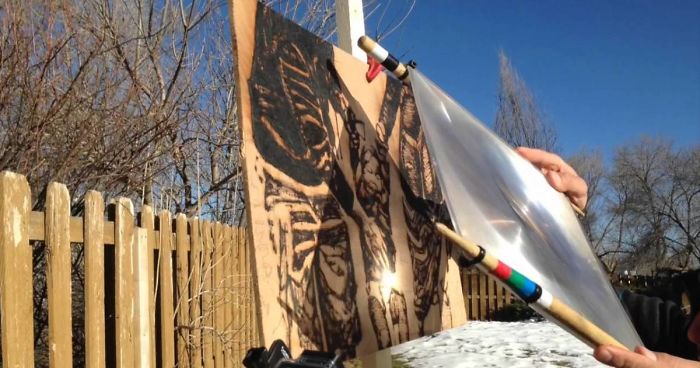 My name is Michael Papadakis, International Sunlight Artist living and working in Southern California and I use an array of mirrors and lenses to focus the sun’s powerful rays into Art.