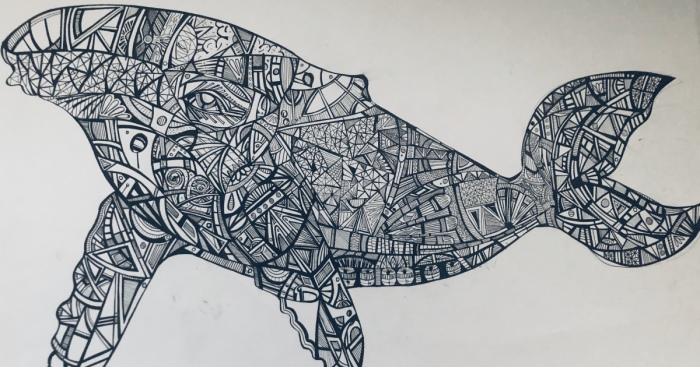 I drew this when we had been the quarantine for over a month or so. I think that the dolphin looks sad and reflects the way I felt when I drew it. Isolation is not suitable for any creature.