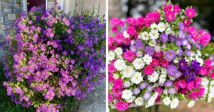 - Purple Dome: Deep purple aster flowers with bushy growth.