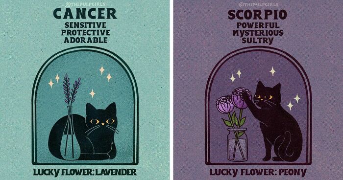 Have you ever imagined cats as astrology signs? No? Well, in case you havn't, the two talented sisters called "The Pulp Girls" did that for you as they illustrated each of the twelve astrology signs in the form of cute cats.