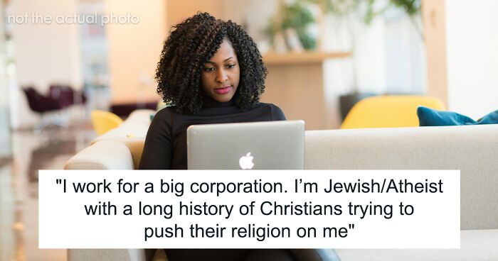 The story took place roughly 2 years ago. The OP, a Jewish/atheist woman who has dealt with a lot of Christians pushing their religion on her, was working for a big corporation.