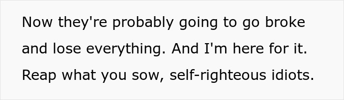 As the toxic family was probably going to be penniless soon, the poster mentioned that she was happy as they deserved it for their behavior. The story gained a lot of attention after she posted it on Reddit.