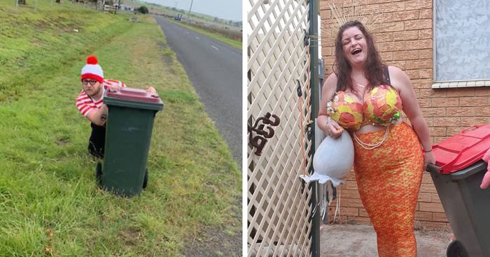If you're following the rules of the quarantine responsibly, you probably only leave your house when you have to. With pretty much all entertainment venues being closed and events canceled, there are not that many places left to visit anyway. However, one thing that is still working as smoothly as it used to is garbage day. Quickly, people began to realize that the only time they can enjoy a little bit of fresh air guilt-free is when they are taking out their trash. To honor this precious moment, a handful of people in Australia decided to properly dress up when they are handling their bins.
