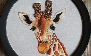 I use embroidery and beadwork to make realistic artwork of animals