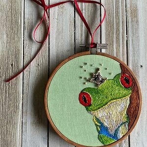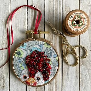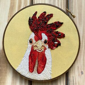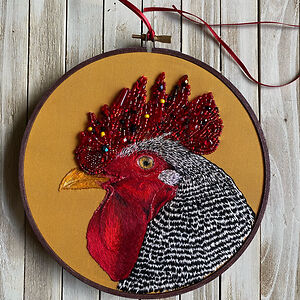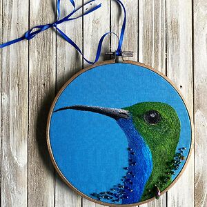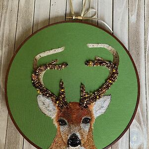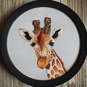 I use embroidery and beadwork to make realistic artwork of animals