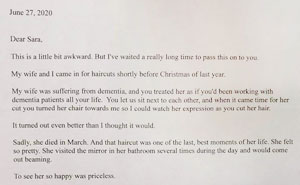 After His Wife With Dementia Dies, Husband Writes a Letter to Hairdresser Saying Her Last Haircut Was The Last Best Thing That Happened In Her Life
