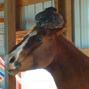 Woman Goes To Check On Her Horse In The Barn, Finds A Chicken Hilariously Sleeping On Its Head