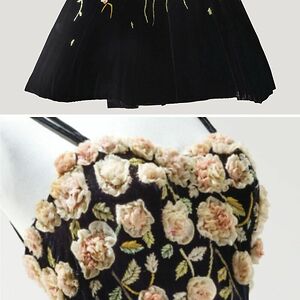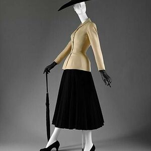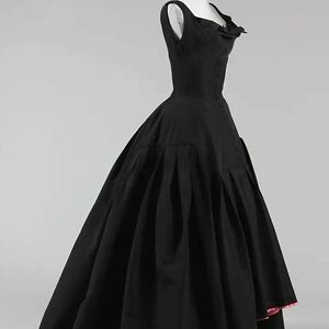 Button Front Black Silk Faille Ball Gown With Contrasting Bright Pink Silk Lining Designed By Pierre Balmain, Circa 1950