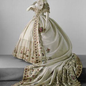 Court Dress With Bodice, Skirt And Train Of Embroidered Silk And Silk Tulle, Made In Great Britain, Circa 1860-1865