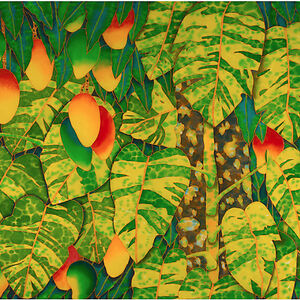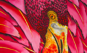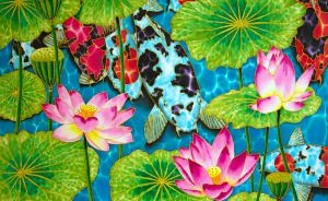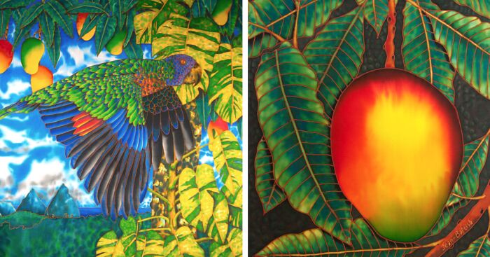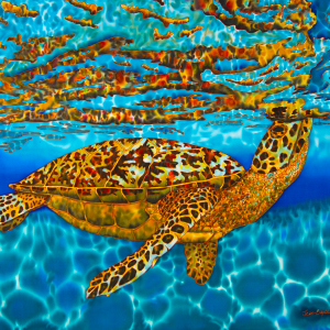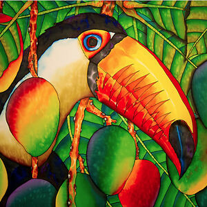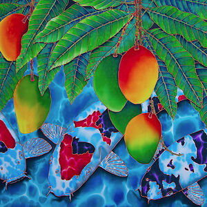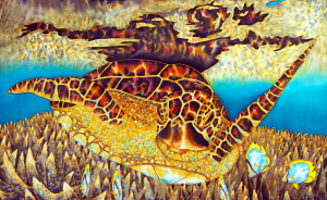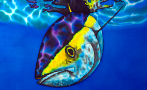 Daniel Jean-Baptiste is a Caribbean artist of Dutch Jewish, African Kalinago Carib descent who resides in St. Lucia and Canada. His art focuses on underwater scenes, game fish and their prey, tropical botanical themes, and exotic animals. He was inspired by his childhood spent fishing in Choiseul and hopes to bring attention to the beauty of his island home through his artwork. He uses 10mm Habotai silk as his canvas and is the originator of the shimmering light water technique, which involves painting with liquid paints on wet silk using Sumi bamboo brushes. The finished product is water-resistant and vibrant due to the translucency and natural luster of the silk.