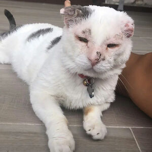 Exactly A Month Ago He Was A ‘Feral’ Cat Suffering From Multiple Infections. Today He’s My Little Old Gentleman In A Christmas Bow Tie. Merry Christmas And Happy Adoption, Gizmo!