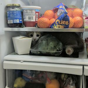 We Adopted A Kitten Last Month... We Now Have Nightly Ritual Of Checking The Fridge And Other Small Spaces To Make Sure He's Not Trapped Anywhere Before We Go To Bed
