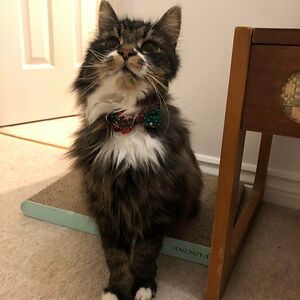 Exactly A Month Ago He Was A ‘Feral’ Cat Suffering From Multiple Infections. Today He’s My Little Old Gentleman In A Christmas Bow Tie. Merry Christmas And Happy Adoption, Gizmo!