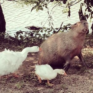 Here Is The Pic I Happened To Snap Once Of A Capybara Getting Snipped By A Goose. I Couldn’t Believe It When I Saw What I Captured
