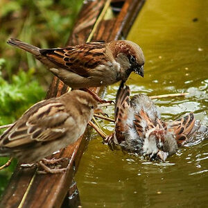 I Was Trying To Take A Sweet Photo Of A Sparrow Having A Bath. I Appear To Have Taken A Photo Of Two Sparrows Committing A Murder
