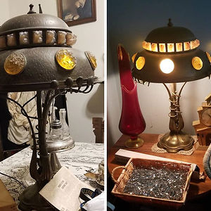 I Inherited This Cool UFO Looking Lamp From My Great Uncle This Past Year. It Doesnt Have Any Maker Markings On It So Its Hard To Look Up How Old It Is. Its Made Entirely Out Of Brass And Glass And Is One Of My Favorite Things Ive Ever Acquired