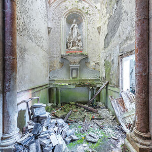 A graduate in Design from the Fine Art School of Nancy in 1986, early in his career Francis Meslet was a designer, but soon turned to advertising when he joined several agencies as an artistic director. After 34 years spent questioning the creative concept and studying images in all his compositions, he is now a creative director. Francis does not hesitate to roam the world in his spare time, searching for abandoned sites, sanctuaries where time seems to have stopped after humans have evacuated them. He thus brings back captivating and melancholic images of his travels to the other side of the world...Like time capsules, testifying to a parallel world and perfect for enabling the mind to wander and ponder, Francis Meslet’s melancholic images brave the passage of time, making way for silence after the memories left behind by human inhabitation. In these deserted places, no more than the rustling of the wind can be heard through a broken window or the sound of water dripping from a dilapidated ceiling. These silences nonetheless invite the spectator to slip into these well-guarded and mysterious places captured by the photographer and attempt to bring to life that which has been forgotten. In this power station orders were shouted in German, in this French Catholic school the cries of children resounded to the sound of the bell but who can imagine the sounds hidden behind the walls of this old psychiatric asylum in Italy or on the docks of this abandoned island off Japan? From these silences, everyone can imagine their own interpretations, ...reinterpretations.