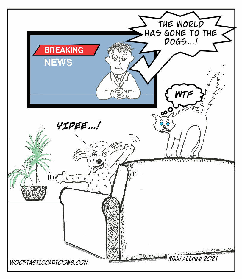 My current project is a book of wooftastic cartoons, starring our rescue pooch, Gizmo, and his furry friends. I started it during the 2020 Covid lockdown—to celebrate the canine universe and make people smile,