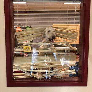 My Doofus Of A Dog Followed The Kids To School Yesterday. Here's A Picture Of Him In The School Office, Obviously Quite Ashamed Of His Actions
