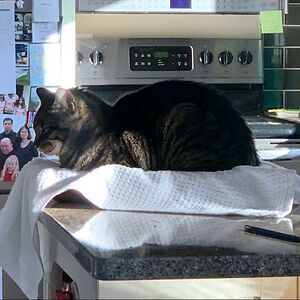After Making A Pan Of Brownies, I Covered It With A Hand Towel To Protect It From Curious Cats. This Only Attracted Racer To A Comfy Brownie Bed