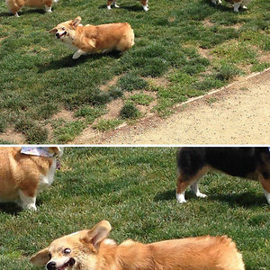 Went To A Corgi Meet Up This Weekend. The Other Corgis Are All Looking At The Ball. My Dog On The Other Hand Is Derping Really Hard