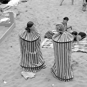 Rita Perchetti And Gloria Rossi Try Out Their New Portable Bathhouse So They Can Change Their Clothes After Sunbathing On Coney Island Beach, 1938