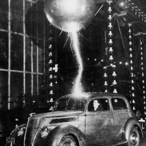 Three Million Volts Hit A Car In The Westinghouse Electric Corporation In Pittsburgh For A ‘Lightning Test,’ Ca. 1940s. The Passenger Remained Unharmed