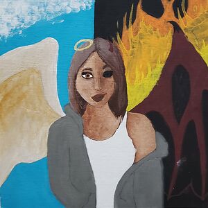 My Most Recent Painting (In The Making). I Just Love The Idea Of Half Angel Half Devil. Sorry, Its Still A Little Messy.