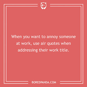 When you want to annoy someone at work, use air quotes when addressing their work title.