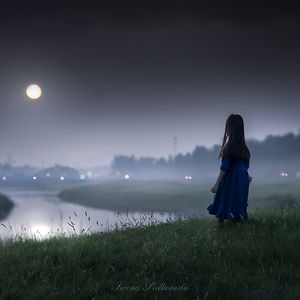 Zhengzhou, China- A Girl Looking At The Moon (The Image Inspired By The Incoming Moon Festival In China)