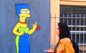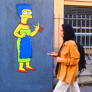 Behind "The Cut" Story Mural Featuring Marge Simpson Supporting The Iranian Protests Which Was Censored In Milan Italy